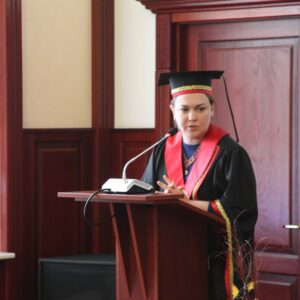 Під час урочистої частини засідання низка науково-педагогічних працівників отримали відзнаки за їхні наукові та освітні досягнення, президент Ксенія Семенова урочисто вручила атестат доцента та дипломи докторів філософії: