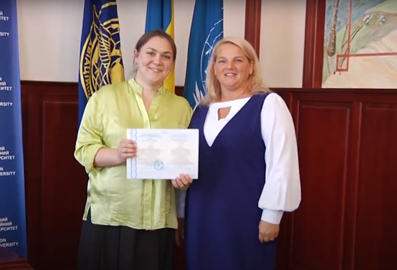 Традиційно засідання розпочалося з урочистої частини: в. о. президента університету Ксенія СЕМЕНОВА вручила дипломи докторів філософії, атестати доцентів і професорів: